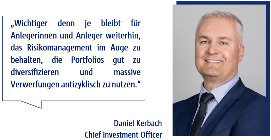 Basierend auf den bisher nur zum Teil diskontierten Konjunktursorgen haben wir im vorherigen ersten Quartal unsere Anleihenquoten erhöht und unsere Aktienquote weiter aktiv bewirtschaftet. Die Situation bleibt angespannt, gerade in einem Umfeld, in dem der Finanzsektor neu geordnet wird, und die OPEC überraschend ihre Förderquoten reduziert hat und somit die Volatilität dementsprechend hoch bleibt. Es ist weiterhin wichtiger denn je für Anlegerinnen und Anleger, das Risikomanagement im Auge zu behalten, die Portfolios gut zu diversifizieren und massive Verwerfungen antizyklisch zu nutzen. Im Laufe des Jahres haben wir während der massiven Marktschwankungen nun mehrfach erfolgreich Put-Absicherungen eingesetzt. Zuletzt im Anleihensegment, da die 10-jährigen Zinsen einer extremen Schwankung unterlagen. Es ist wichtig, darauf zu achten, im Portfoliokontext gute Risiken zu nehmen. Unsere Priorisierung im Aktienblock liegt auf nachhaltigen, substanzstarken und robusten Aktien.