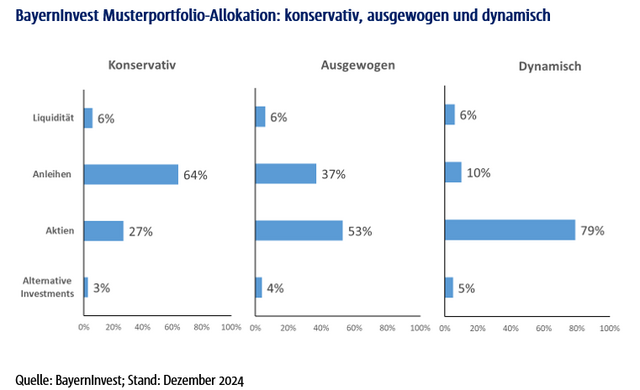 Veränderungen an den Kapitalmärkten werden im BayernInvest-Investmentansatz kontinuierlich und situationsbezogen berücksichtigt. Im Mittelpunkt steht dabei das Ziel, eine stabile Rendite mit einem klaren Fokus auf nachhaltige und robuste Substanzanlagen zu erzielen. Im Zuge der aktiven Bewirtschaftung unserer Kernstrategie im Portfolio haben wir das Portfoliorisiko in zwei Schritten angepasst, um eine potenzielle Jahresendrallye gezielt für die Renditeoptimierung zu nutzen. Anfang Oktober erfolgte der erste Schritt, bei dem wir den „Risikoload“ des Portfolios auf Übergewicht erhöhten. Dazu wurden Schwellenländeranleihen und Aktien in der Allokation erhöht. Das von China angekündigte Stimulus-Paket, bestehend aus geld- und fiskalpolitischen Maßnahmen, zielt darauf ab, den heimischen Konsum zu stärken. Die Entschlossenheit der chinesischen Regierung, die inländische Wirtschaft zu unterstützen, lässt auf eine Ausweitung der Maßnahmen schließen. Diese positiven Impulse, kombiniert mit einem optimistischeren Ausblick auf die Aktienmärkte zum Jahresende, führten dazu, dass wir Euroraum-Aktien von „Untergewicht“ auf „Neutral“ hochstufen konnten. Asiatische Aktien erscheinen historisch günstig bewertet, und die Saisonalität spricht ebenfalls für eine höhere Gewichtung. Im zweiten Schritt wurde Anfang November die positive Risikoallokation weiter ausgebaut. Nach den US-Wahlen und dem Wahlsieg Donald Trumps, verbunden mit einer republikanischen Kontrolle des Kongresses, sahen wir erhebliches Aufwärtspotenzial für US-Aktien. In diesem Zuge haben wir US-Aktien von „Neutral“ auf „Übergewicht“ hochgestuft. Besonders für Anleger mit entsprechenden Möglichkeiten empfahlen wir den Russell 2000 Index, der durch seinen stärkeren Fokus auf die US-Wirtschaft zusätzliche Chancen bietet. Durch diese Maßnahmen wurde der Anteil an substanzstarken, nachhaltigen Aktien im Portfolio weiter gestärkt. Gleichzeitig haben wir im Oktober die Liquiditätsquote vorübergehend reduziert, um die Allokation optimal auf die Marktchancen abzustimmen. Um die Robustheit des Portfolios weiter zu stärken, haben wir Anfang November die Gewichtung inflationsgeschützter Anleihen von „Untergewicht“ auf „Neutral“ angehoben. Nach der Wahl Donald Trumps in den USA könnte eine protektionistischere Handelspolitik zu steigendem Inflationsdruck führen, der auch Europa betreffen dürfte. Die aktuelle Entwicklung der Service-Inflation weist bereits auf ein erhöhtes Risiko wachsender Teuerung hin. Mit der neutralen Gewichtung inflationsgebundener Anleihen integrieren wir eine Absicherung gegen mögliche Inflationsanstiege in die Portfolios.