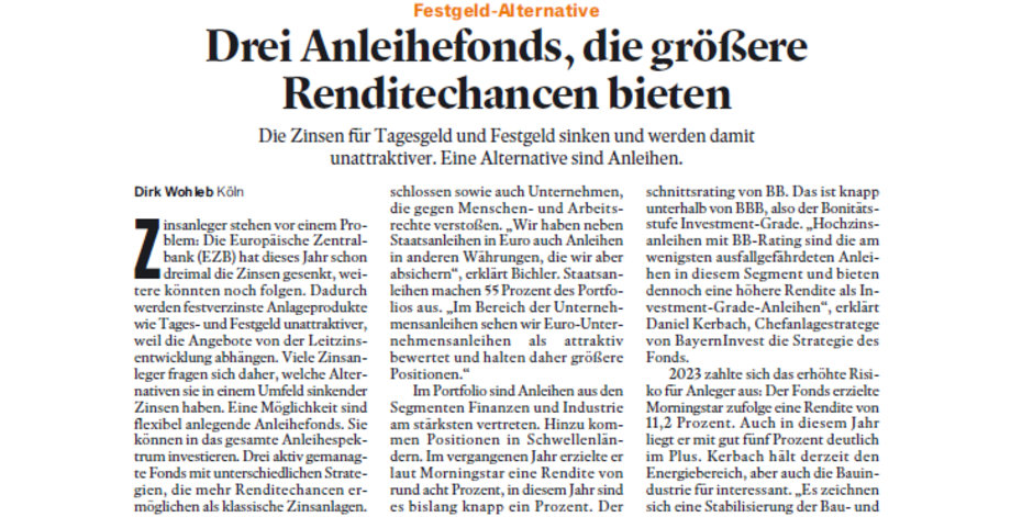 Drei Anleihefonds, die größere Renditechancen bieten; darunter der BayernInvest ESG High Yield Euro Fonds